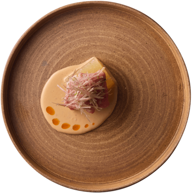 角谷健人[かくたにたけひと] 愛称 ″カク・ランド″ 1986年7月29日生まれ 東京都出身 ″天才″とはこういう人の事なのかと思わせてくれる。自由な発想で、美味しさに辿り着く過程も融通無碍。